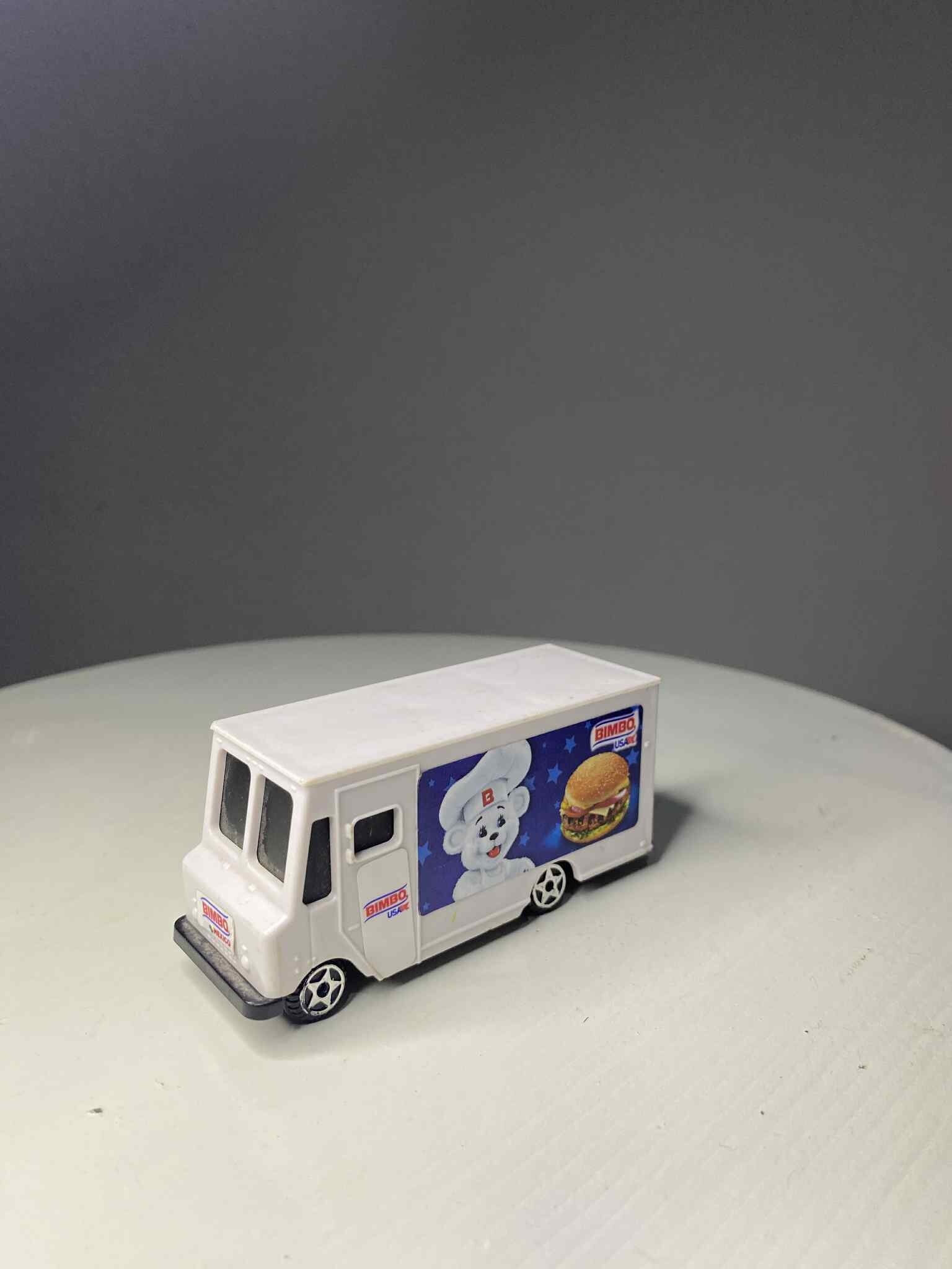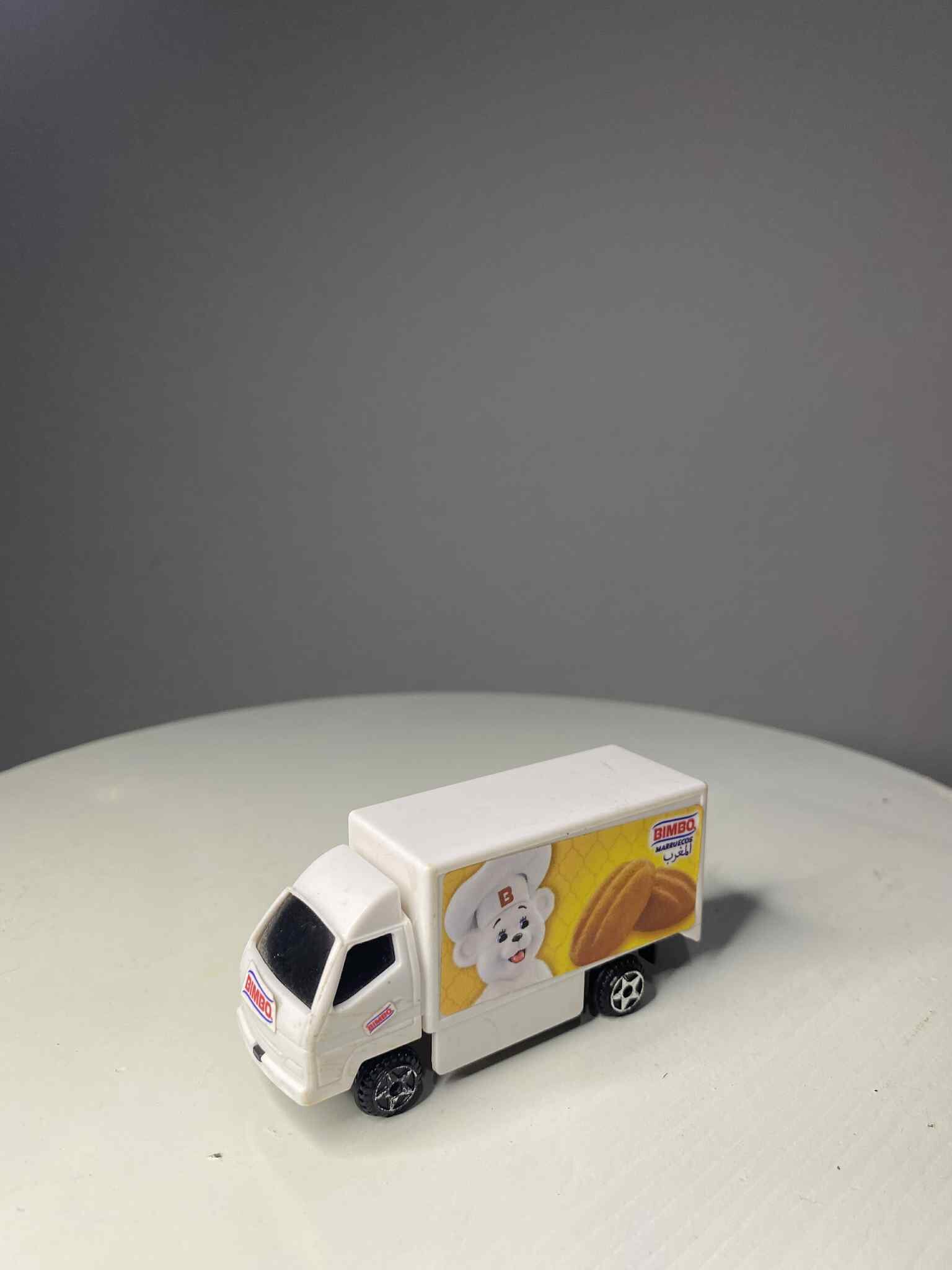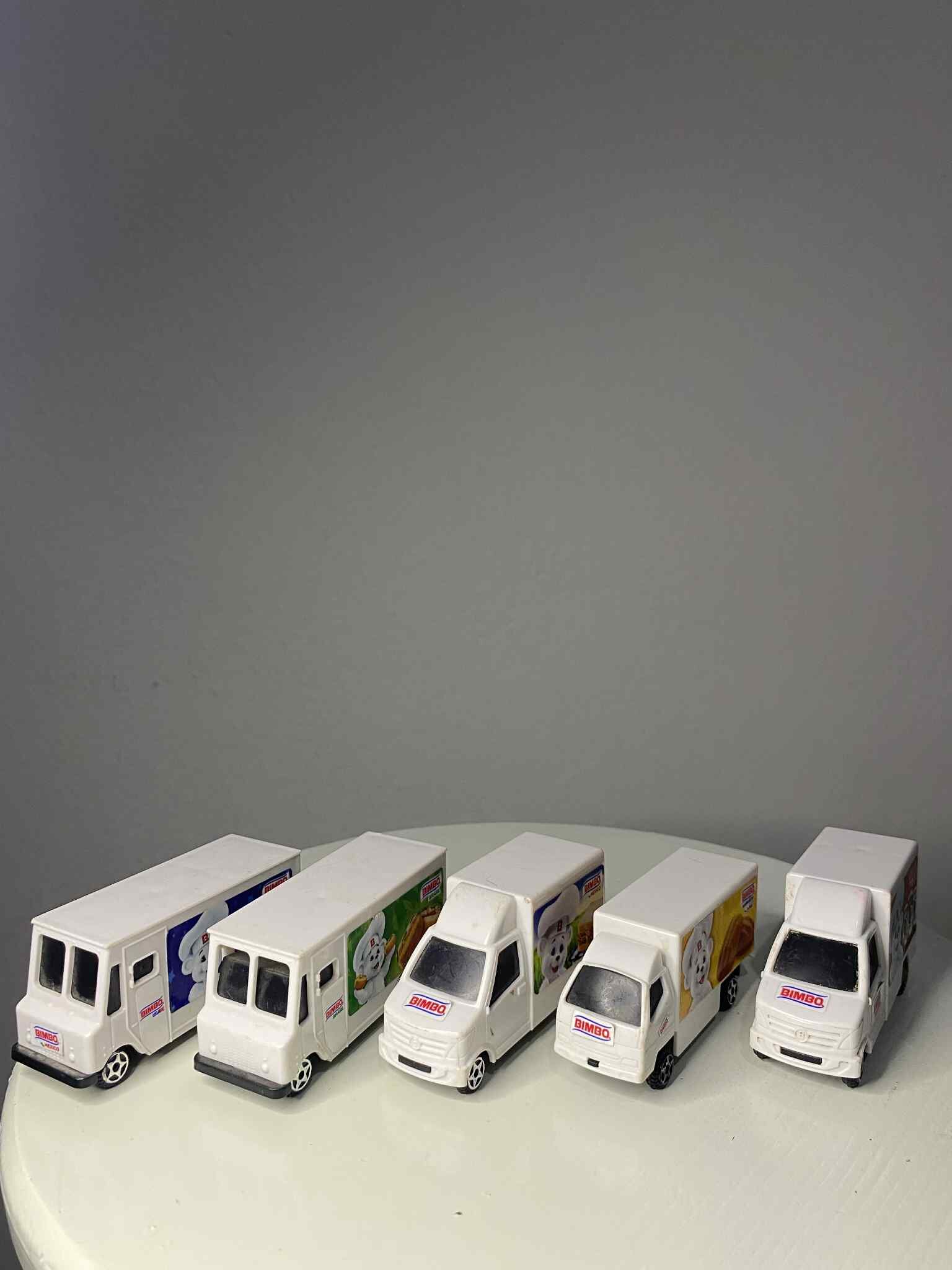 Colección Camioncitos Bimbo 2019 con estampas de países. Set de 5 piezas originales (~5–7.5 cm).