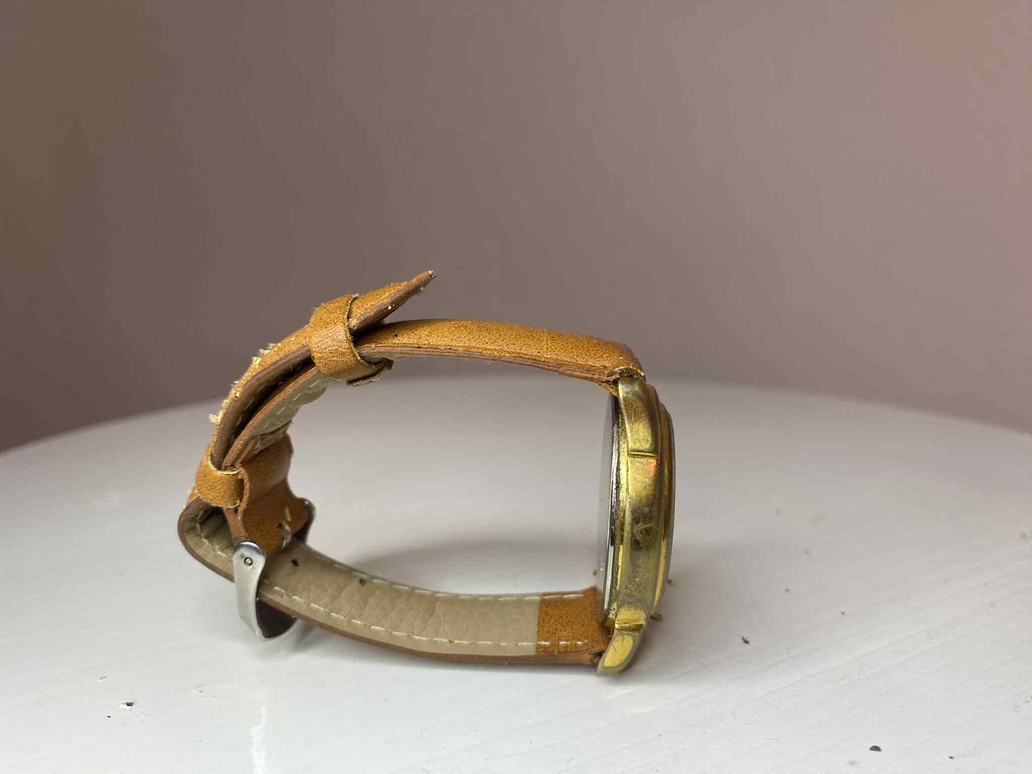 Correa: Cuero marrón genérico, no original; con signos de uso y desgaste.
